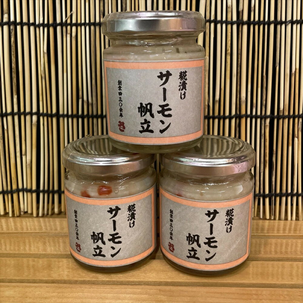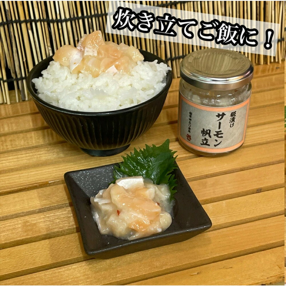 【ふるさと納税】麹漬け サーモン帆立 3本【シャケ 鮭 ほたて ホタテ おつまみ 珍味 ご飯のお供 惣菜 珍味 お取り寄せ 御中元 お中元 お歳暮 父の日 母の日 贈り物 日本酒 焼酎】【神奈川県小田原市早川】