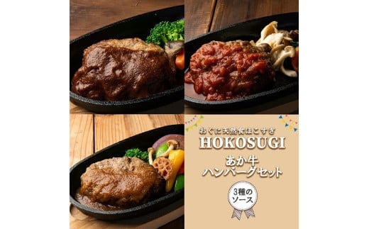 - 【おぐに天然食ほこすぎ】あか牛 手作りハンバーグ 3個 計600g 3種のソース 熊本 阿蘇 あか牛 あか牛認定店 惣菜 小国育ち ほこすぎ 人気レストラン ハンドメイド 和風ソース トマトソース デミグラスソース 湯せん ボイル 解凍 専門店の味 ギフト 贈答用 ご家庭用