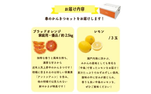 【先行予約】ブラッドオレンジ 家庭用(優品) 約2.5kg & 瀬戸内海の島レモン 3玉 セット | 柑橘 レモン みかん 蜜柑 mikan 檸檬 オレンジ ブラッドオレンジ おれんじ かんきつ セット【2026年3月下旬頃から発送予定】 瀬戸内海 愛媛県 松山市 ココオ Koko'o