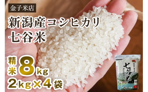 【令和7年産新米先行予約】老舗米穀店が厳選 新潟産 従来品種コシヒカリ「七谷米」精米 8kg(2kg×4)《10月上旬から順次出荷》 窒素ガス充填パックで鮮度長持ち 金子米店