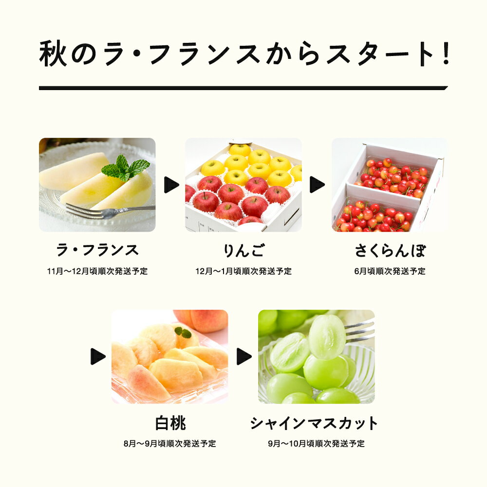 - 【ふるさと納税】】【先行予約】【秋始まり】フルーツ定期便 全5回 令和7年産 令和8年産 ラフランス ラ・フランス りんご サンふじ シナノゴールド さくらんぼ 佐藤錦 白桃 ぶどう シャインマスカット 果物 送料無料 ns-ft5xx-a ※沖縄及び離島への配送不可
