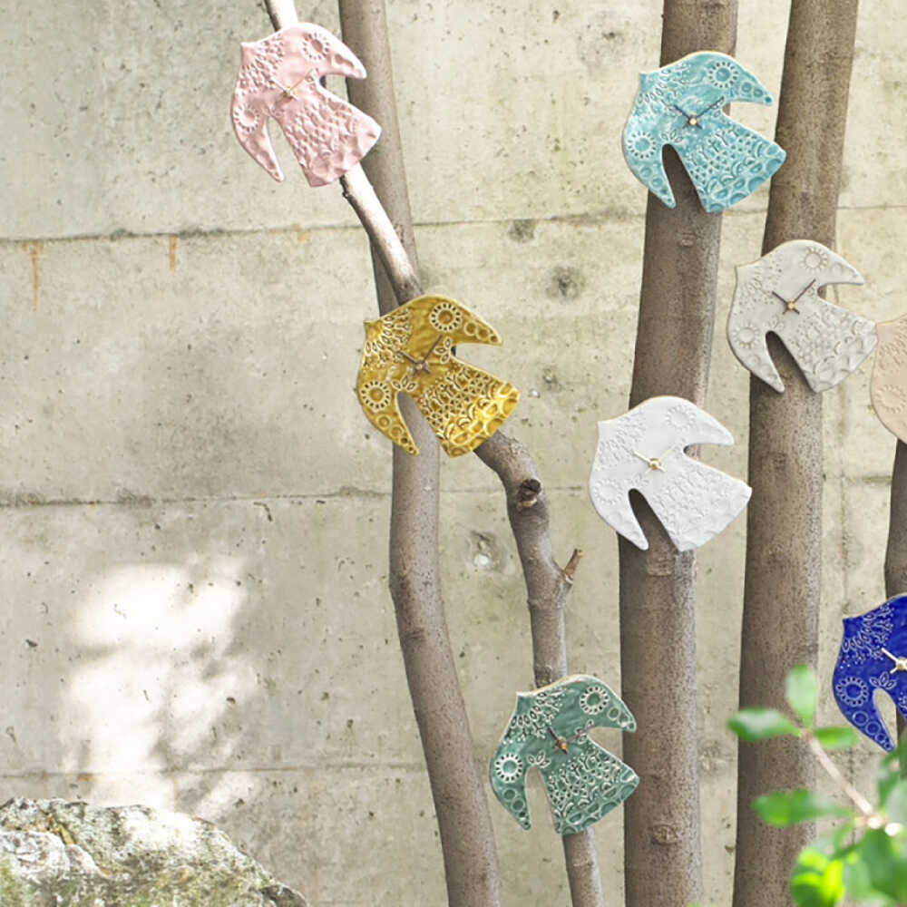 - 【ふるさと納税】【美濃焼】 happy bird clock グレー 多治見市 / 杉浦製陶 掛け時計 タイル 鳥 ギフト[TAO041]
