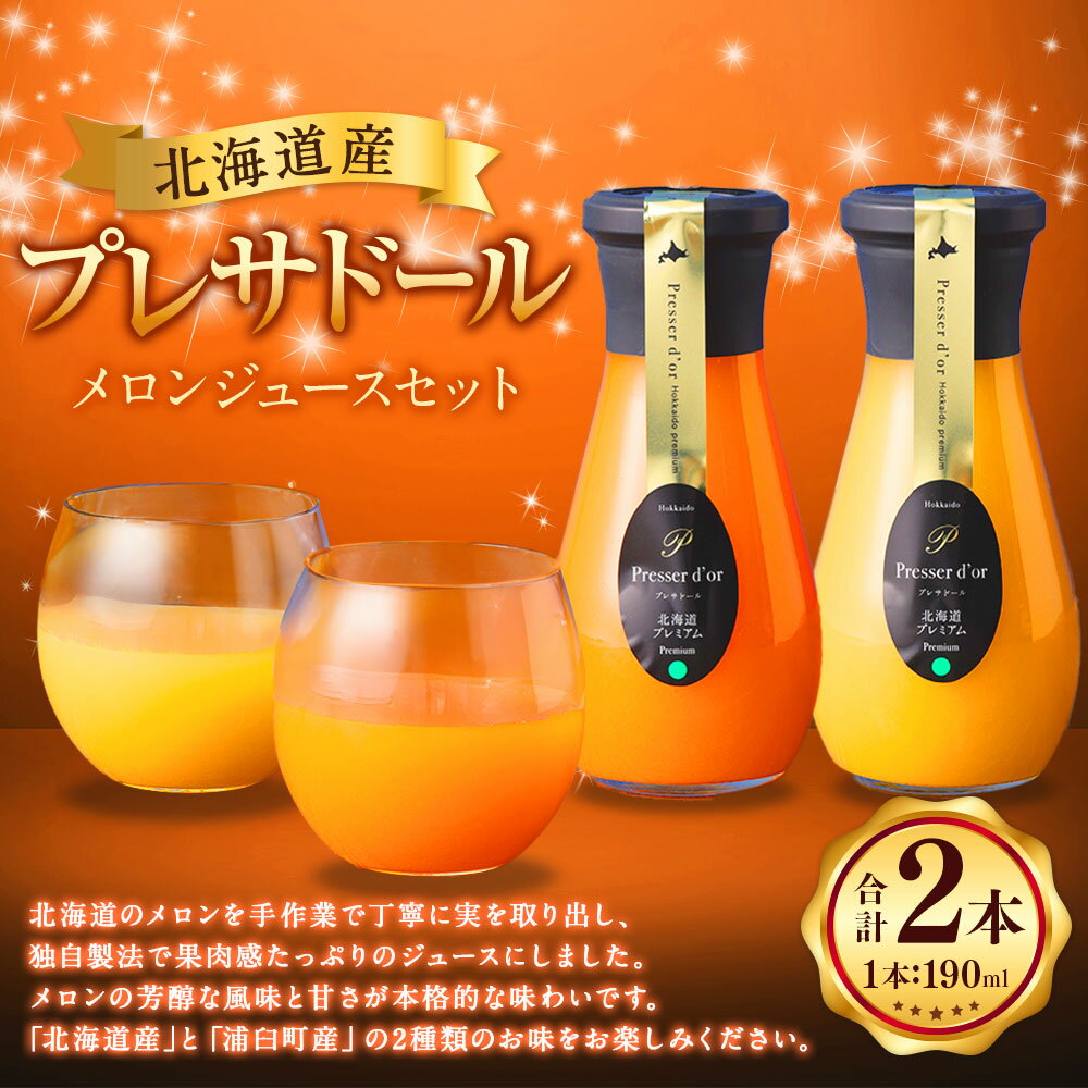- 【ふるさと納税】プレサドール 北海道メロンジュースセット 190ml 2本 2種 セット プレミアム メロン メロンジュース ジュース 北海道産 浦臼町産 キングメルティー フルーツ 果物 北海道 浦臼町
