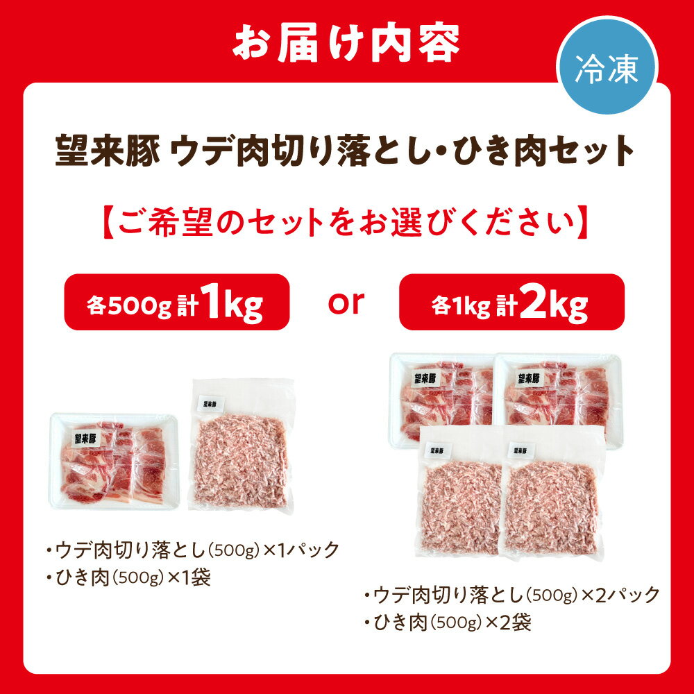 - 【ふるさと納税】 望来豚ウデ肉切り落としと望来豚ひき肉のセット 【選べる容量】 各500g 計1kg 各1kg 計2kg 望来豚 ウデ肉 切り落とし ひき肉 セット 北海道産 三元豚 豚肉 簡単調理 冷凍保存 ハンバーグ 餃子 そぼろ煮 炒め物 惣菜 北海道 石狩市