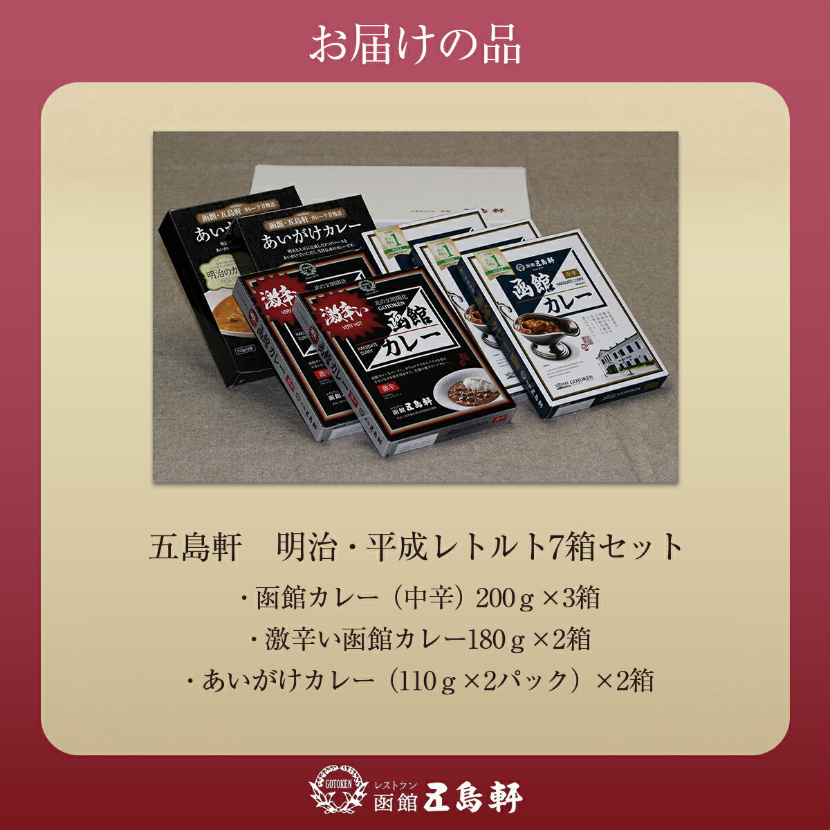- 【ふるさと納税】五島軒 明治・平成レトルト7箱セット 【ふるさと納税 人気 おすすめ ランキング 函館カレー カレー かれー 中辛 激辛 あいがけ レトルト パウチ セット 五島軒 北海道 北斗市 送料無料 】 HOKE015