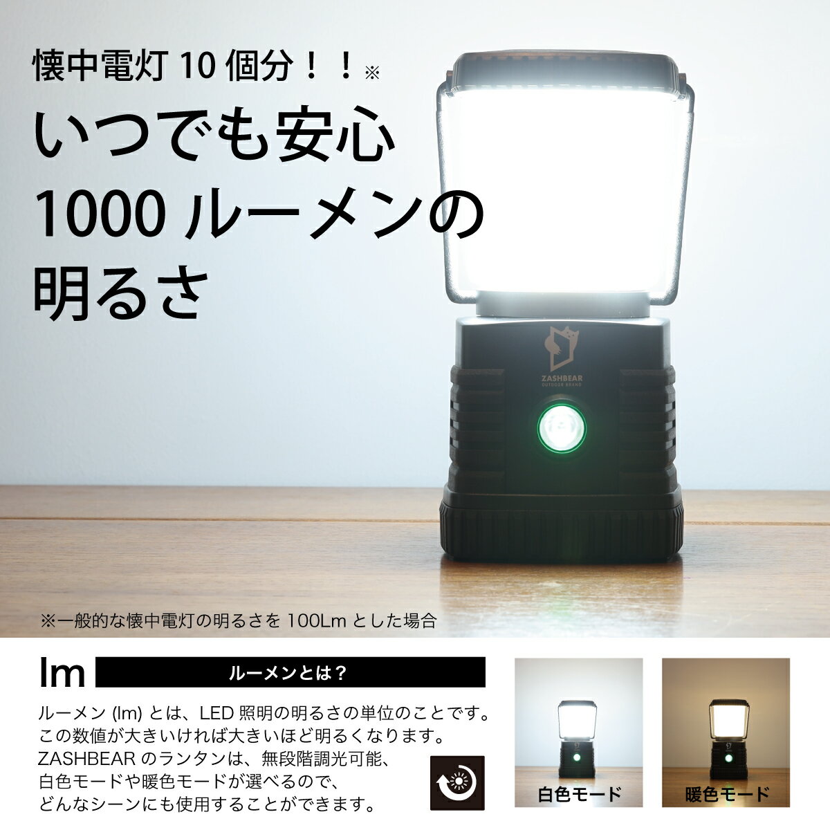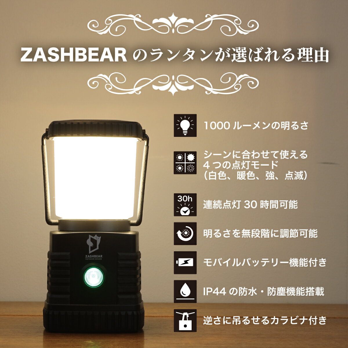 【ふるさと納税】ZASHBEAR LED LANTERN LEDランタン 1000ルーメン 本体 ブラック 充電タイプ 充電式 らんたん コンパクト Micro-USBケーブル(Type-c) 取扱説明書付き キャンプ用品 アウトドア テント グランピング 懐中電灯 車中泊 防災 台風 地震 停電 災害用 送料無料