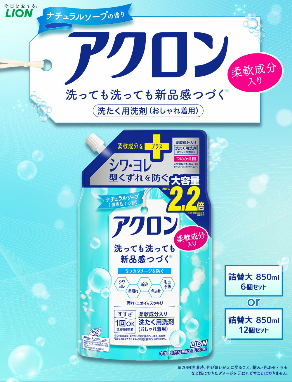 - 【ふるさと納税】<選べる内容量>アクロン ナチュラルソープの香り 計5.1kg(850g×6個)・計10.2kg(850g×12個) 柔軟成分入り おしゃれ着用洗剤 微香タイプ 洗濯洗剤 石鹼 日用品 消耗品 洗浄 衣類 衣料 すすぎ1回 茨城県 神栖市 送料無料