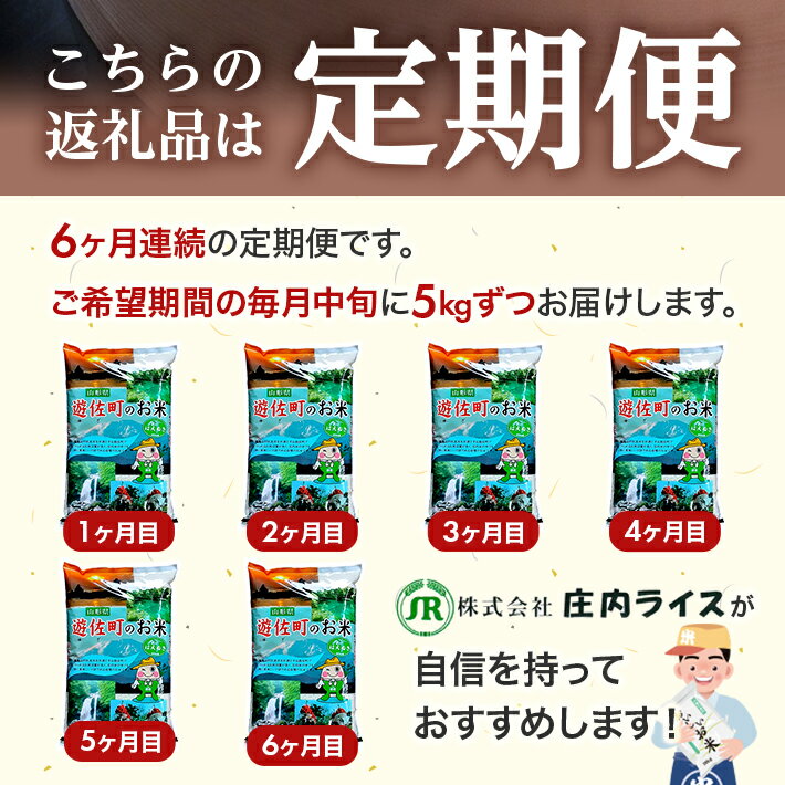 - 【ふるさと納税】≪6ヶ月定期便≫ はえぬき 5kg×6ヶ月連続 計30kg 山形県遊佐産 ご希望期間の毎月中旬頃お届け 東北 遊佐町 庄内地方 庄内平野 米 お米 精米 白米 庄内米 ごはん ご飯 セット 連続定期便
