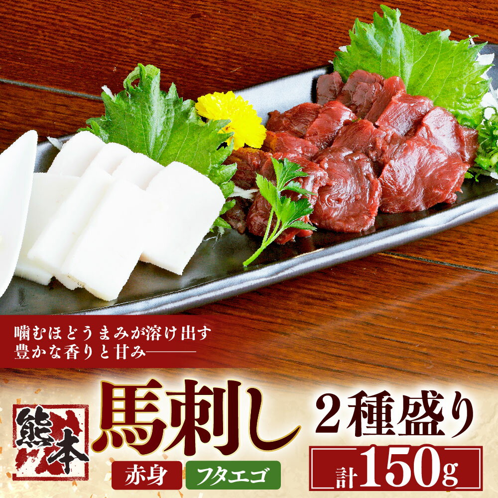 【ふるさと納税】熊本 馬刺し 2種盛り約150g (赤身約50g×2・フタエゴ約50g×1) 馬 馬肉 桜肉 食べ比べ セット 低カロリー 栄養豊富 ヘルシーミート 低脂質 生姜醤油付き 熊本県 湯前町 送料無料