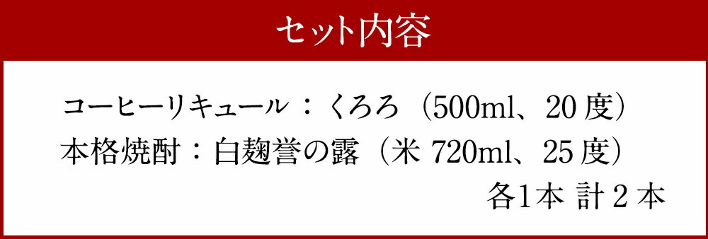 - 【ふるさと納税】 くろろ(コーヒーリキュール)・白麴誉の露セット リキュール 500ml 20度 球磨焼酎 米焼酎 720ml 25度 合計2本 無糖 送料無料