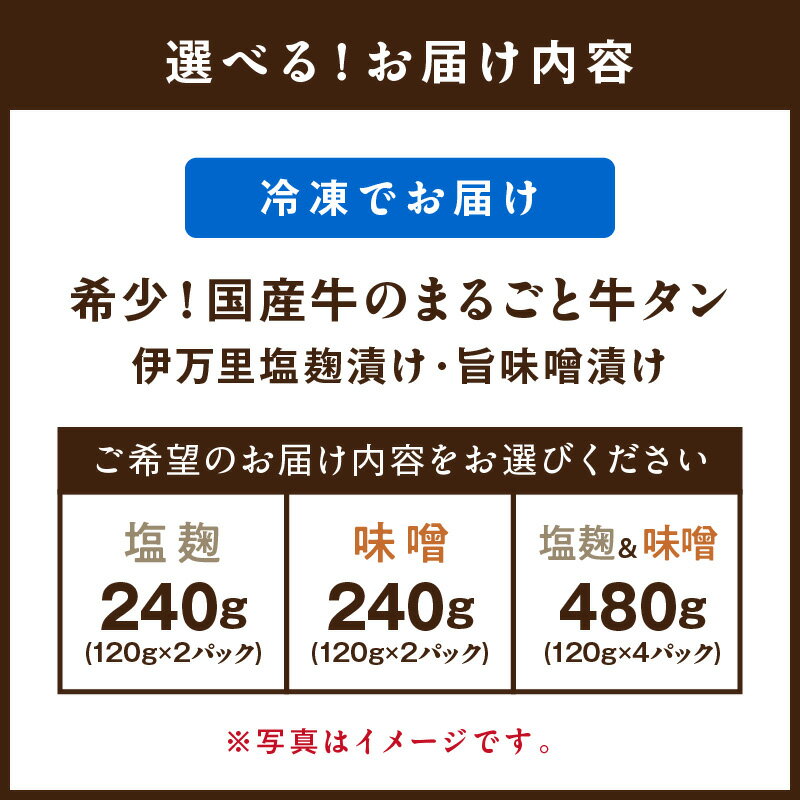 【ふるさと納税】希少!国産牛のまるごと牛タン <味が選べる/旨味噌漬け・伊万里塩麹漬け・両方セット(塩麹、味噌)>【 ふるさと納税 牛タン タン元 タン中 タン先 牛肉 肉 タン肉 味付け肉 塩麹牛タン 味付き スライス肉 BBQ バーベキュー 焼肉 焼き肉 数量限定 】