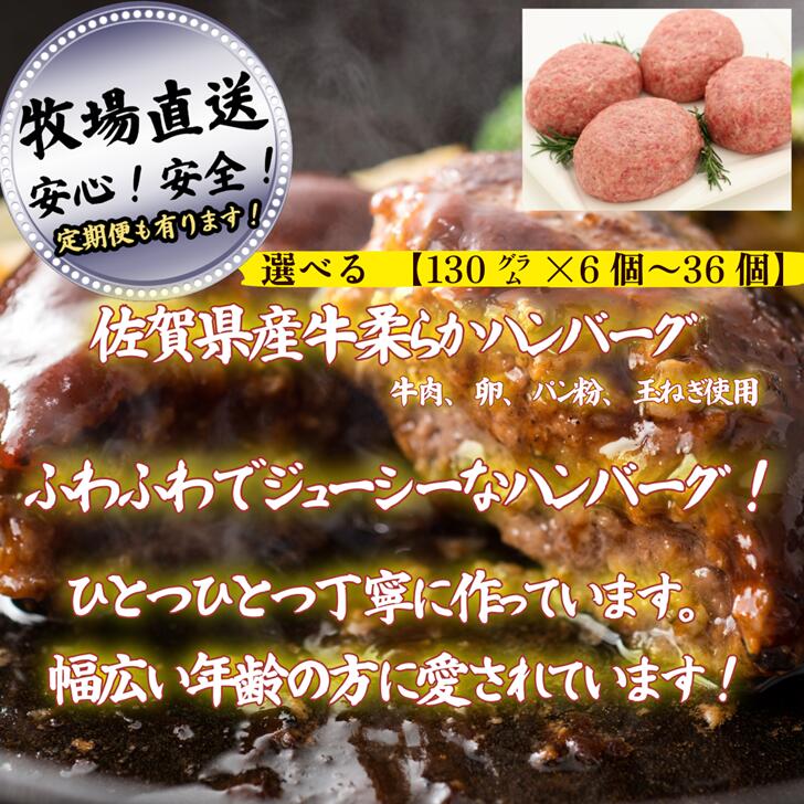 - 【ふるさと納税】【牧場直送】佐賀産牛柔らかハンバーグ 選べる 130g×6個~36個【定期便も選択可能】:B120-057