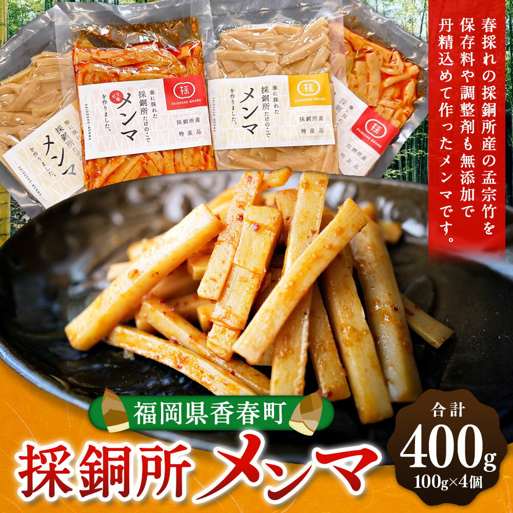 【ふるさと納税】採銅所メンマ 2種 100g×各2袋 計400g【2025年7月上旬~2026年2月上旬発送予定】 メンマ ピリ辛メンマ めんま ピリ辛 おかず おつまみ 筍 たけのこ 無添加 冷蔵 九州 福岡県 香春町 送料無料