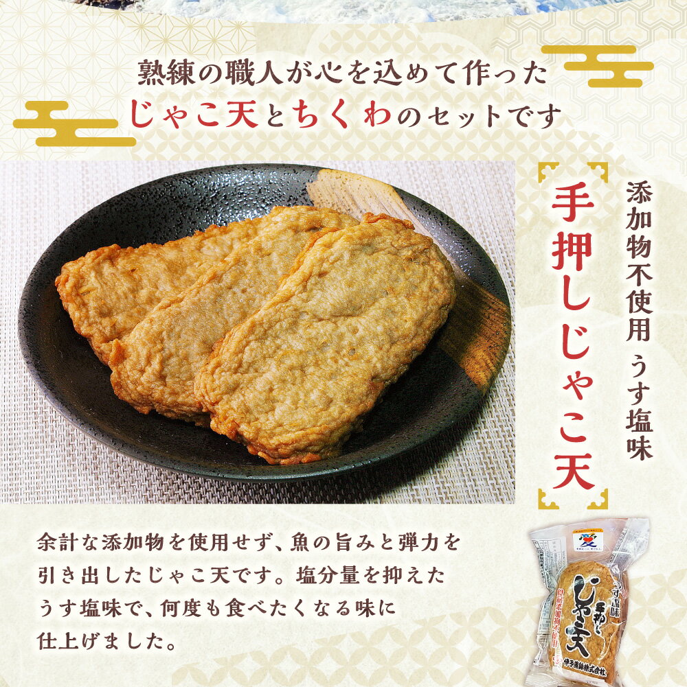 - 【ふるさと納税】添加物不使用 うす塩味 手押しじゃこ天セット 合計6袋 じゃこ天 3枚入り×4袋 コロちくわ 3本入り×2袋 練製品 練り製品 練り物 竹輪 特産品 つまみ おかず 愛あるブランド認定 愛媛県 送料無料 (9)