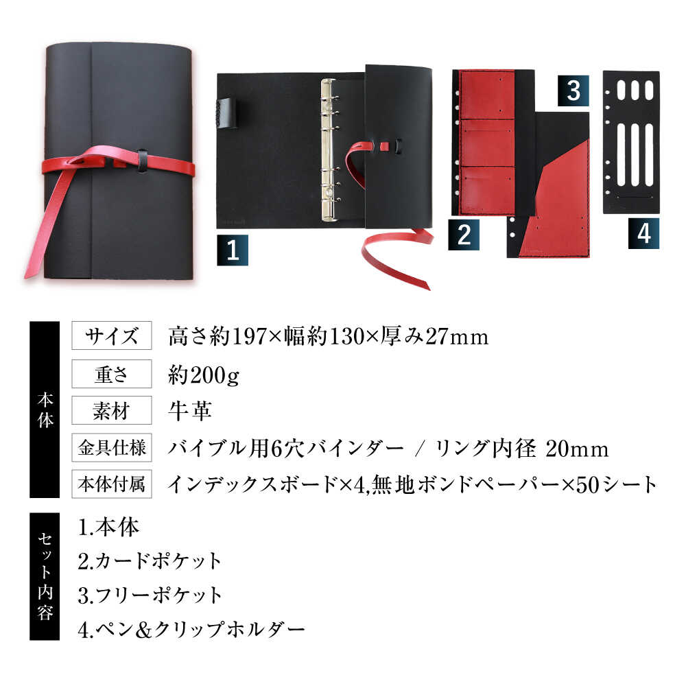 【ふるさと納税】【選べるカラー】KAKURA 紐巻きバイブルシステム手帳 4点セット 大阪府高槻市/KAKURA[AOBI017] 本革 レザー おすすめ 文具 セット 手帳 文房具 システム手帳