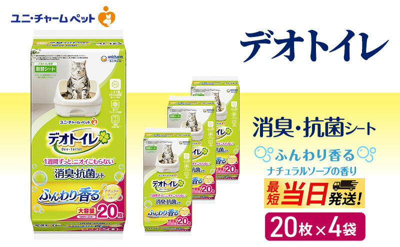 【ふるさと納税】【最短当日発送!】デオトイレ 消臭・抗菌 シート ナチュラルソープ 20枚×4 ペットシーツ ペットシート トイレ 猫 猫用トイレ ペット 清潔 ユニ・チャーム 愛猫用 ペット用品