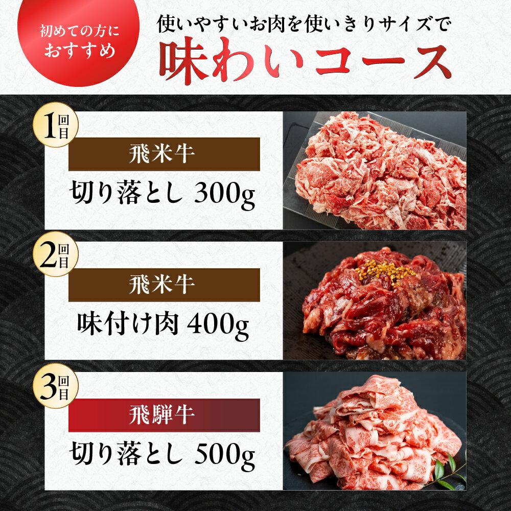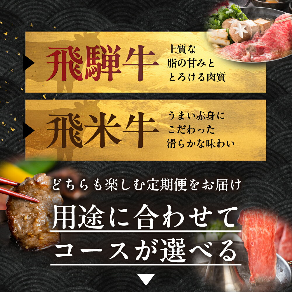 - 【ふるさと納税】\飛騨牛入り/ 黒毛和牛 お肉の定期便(全3回 / 全6回 / 全12回) ブランド牛 定期便 焼肉 / すき焼き / しゃぶしゃぶ / 切り落とし / ハンバーグ / 赤身 / もも / 肩 / ロース / カルビ 国産 食べ比べ セット 牛肉 肉 和牛 飛米牛 毎月 冷凍 どやな飛騨市