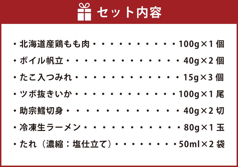 - 【ふるさと納税】【885】北海道小樽よりお届け! 北海道鶏塩ちゃんこ鍋セット B0080307 | ちゃんこ鍋 鍋 鍋セット 鶏肉 帆立 ほたて つみれ いか 鱈 ラーメン 麺 冷凍 小樽市 北海道 送料無料