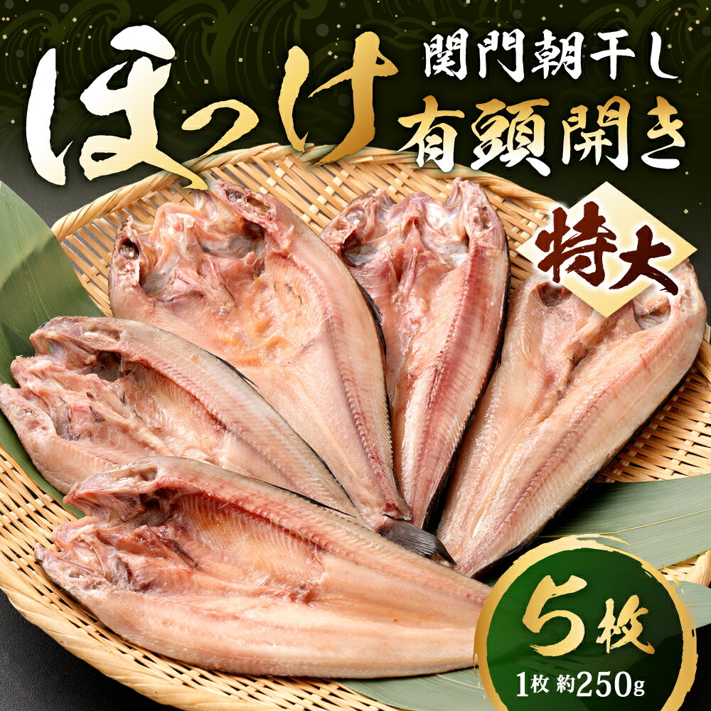 - 【ふるさと納税】関門朝干し ほっけ 有頭開き 特大 5枚 セット 1枚約250g 合計1250g ホッケ 干物 ひもの 焼き魚 魚 真ほっけ 和食 日本食 おかず ほっけの開き 冷凍 国産 福岡県北九州市