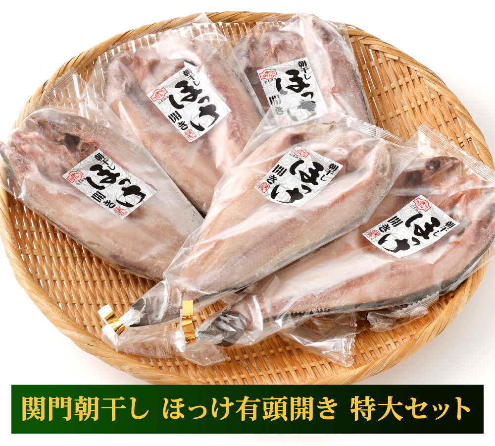 【ふるさと納税】関門朝干し ほっけ 有頭開き 特大 5枚 セット 1枚約250g 合計1250g ホッケ 干物 ひもの 焼き魚 魚 真ほっけ 和食 日本食 おかず ほっけの開き 冷凍 国産 福岡県北九州市