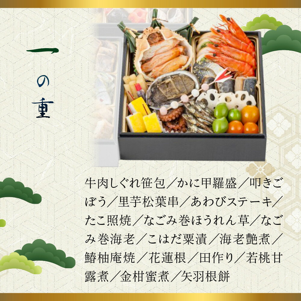 おせち「板前魂の松」和洋風 三段重 39品 3人前 6.8寸 鮑&おこわ&豚角煮 付き【年内発送】