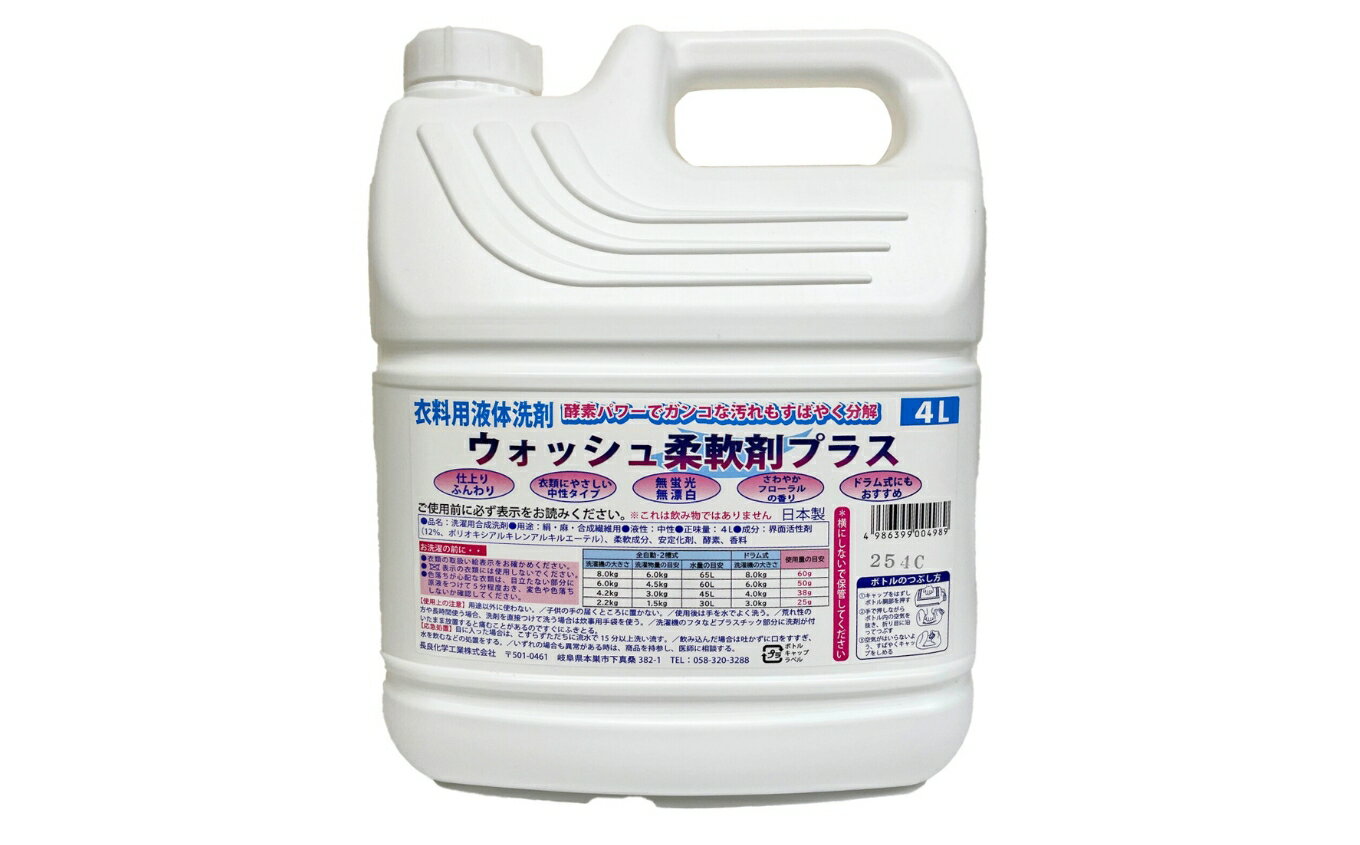 【ふるさと納税】 衣料用 液体 洗剤 ウォッシュ 柔軟剤 プラス 4L × 4個 セット | 洗濯 柔軟剤入り洗剤 ランドリー ウォッシュ まとめ買い 詰替 日用品 生活用品 防災 岐阜県 北方町