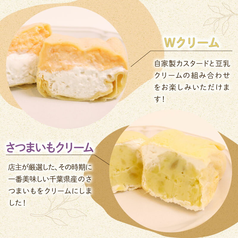 - 【ふるさと納税】 クリームクレープ 2種セット 8個入( Wクリーム さつまいもクリーム ) 冷凍 和菓子 手作り 冷凍スイーツ 個包装 洋菓子 冷凍クレーム さつまいも いも 卵 たまご 自家製 管理栄養士 健康 国産 豆乳 豆乳クリーム おいしい 美味しい こだわり Fika…