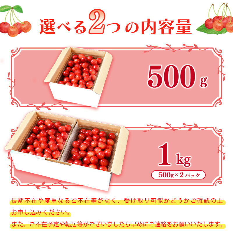 - 【ふるさと納税】《先行予約》 令和8年産 山形の さくらんぼ 選べる! 500g / 1kg 「 佐藤錦 」 秀品 L以上 山形県 2026年産【2026年6月上旬頃〜6月下旬頃発送予定】 ※配送不可 沖縄・離島フルーツ 果物 果実 くだもの サクランボ 農協 東北 山形 寒河江 JAさがえ西村