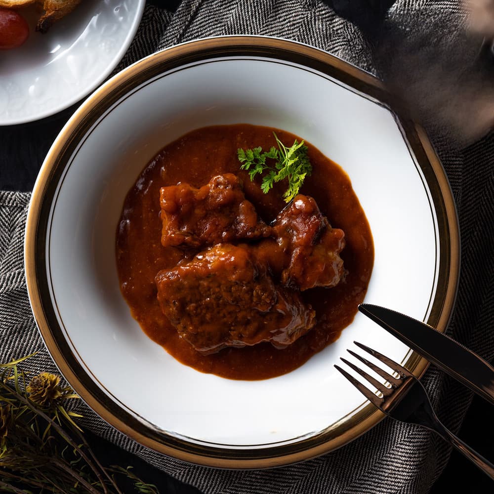 - 【ふるさと納税】プレミアム ビーフシチュー 1個 と 煮込み デミグラス ハンバーグ 1個 のセット 煮込みハンバーグ 洋食 洋風 惣菜 おかず レンジで簡単 冷凍 個包装 送料無料 ルボンヌ