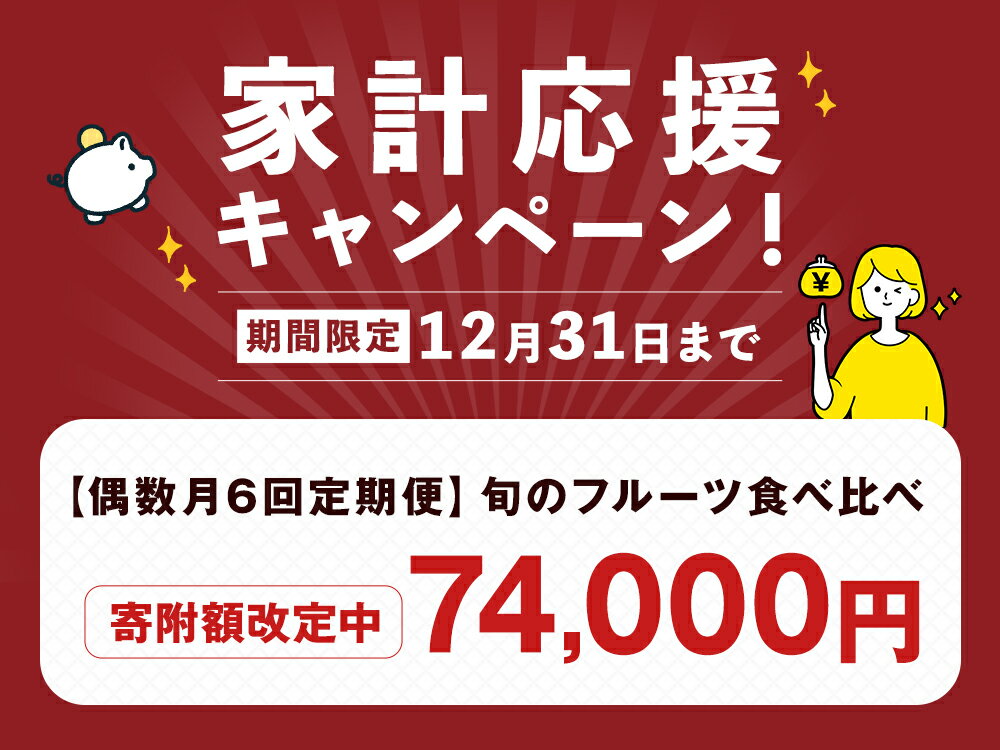 - 【ふるさと納税】【期間限定!~12月31日まで寄附額改定中】年6回定期便 ( 偶数月配送 ) 旬のフルーツ定期便 食べ比べセット 季節により厳選した果物を2品目詰め合わせ | フルーツ 果物 くだもの 旬のフルーツ 季節のフルーツ 送料無料