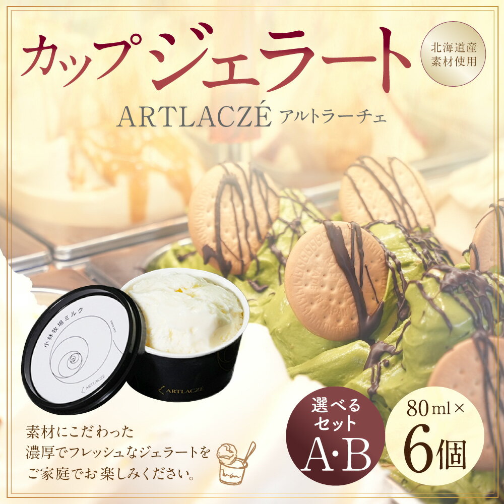 【ふるさと納税】<選べる種類>アルトラーチェ カップジェラート 6種セット 各80ml ミルク モカ かぼちゃ ピスタチオ ミルクハニー ヘーゼルナッツ チョコ いちご 抹茶 マンゴー レアチーズ ジェラート 冷凍 北海道 北広島市加工 送料無料
