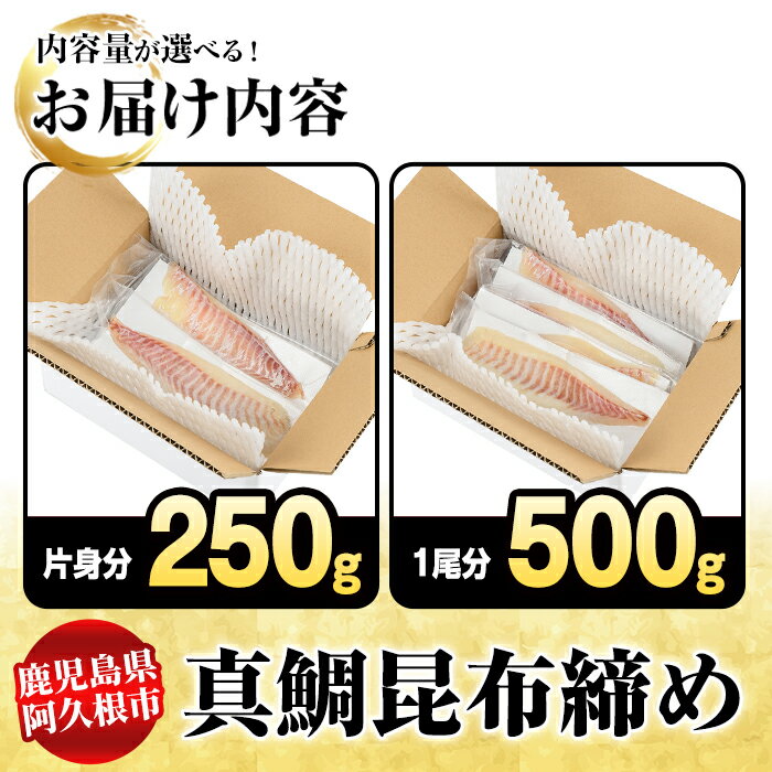 - 【ふるさと納税】<内容量が選べる!>真鯛昆布締め(約250~500g) 鹿児島県 阿久根市 たい タイ 真鯛 魚貝 魚介 海産物 昆布〆 風味 旨味 おかず おつまみ【さるがく水産】