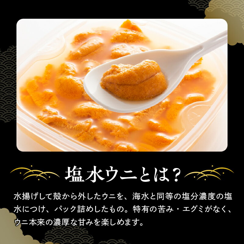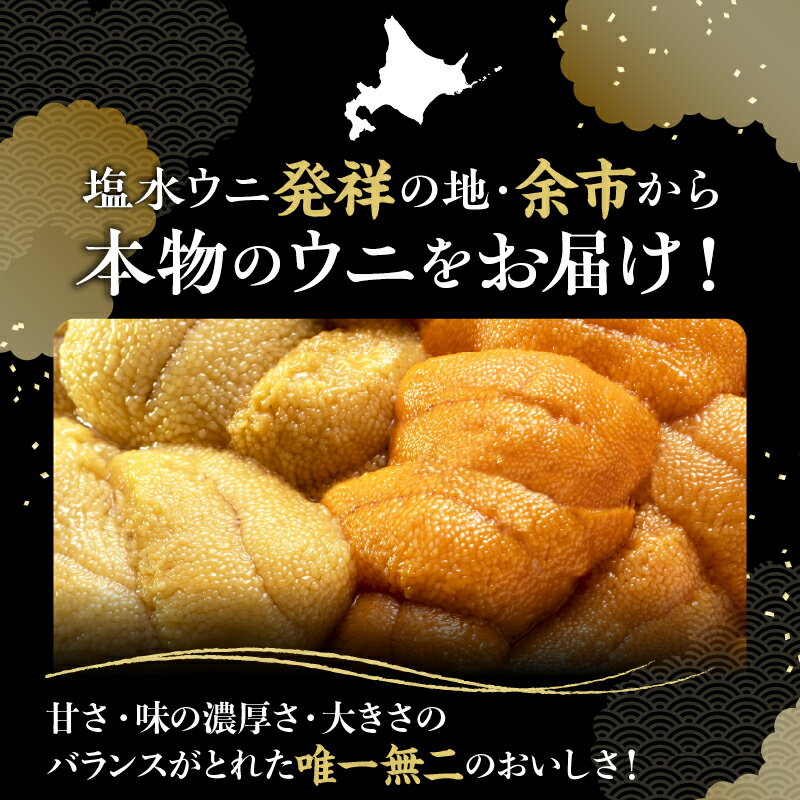 - 【ふるさと納税】【2026年夏発送】 塩水ウニ 【 バフンウニ & ムラサキウニ 】 各 100g × 1パック 北海道余市町産 冷蔵 生うに うに 海産物 魚介類 北海道産 余市産 とろける 濃厚 磯の風味 甘味 強い 香り 余韻 後味 爽やか 送料無料