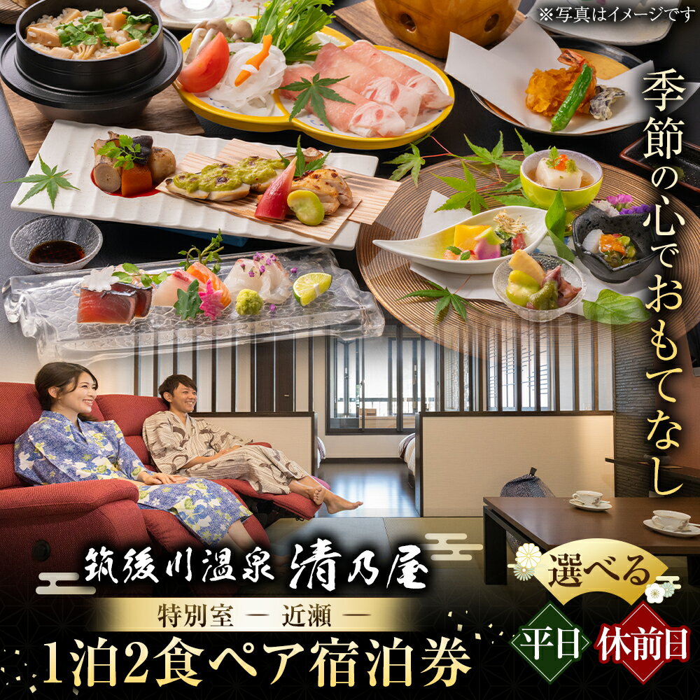 - 【ふるさと納税】【1泊2食 (平日)・(休日前) ペア宿泊券】筑後川温泉清乃屋 (特別室・近瀬) 宿泊チケット 旅行 旅 食事券 温泉 ペア 送料無料 福岡県 うきは市