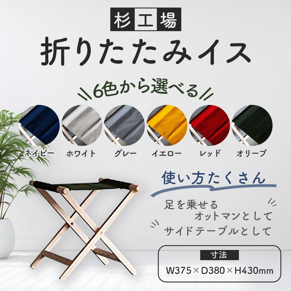 【ふるさと納税】【選べるカラー】 杉工場 折りたたみイス 椅子 折りたたみチェア ネイビー・グレー・ホワイト・イエロー・レッド・オリーブ リビングチェア キッチンチェア 雑貨 オットマン サイドテーブル 多機能 送料無料 福岡県 うきは市