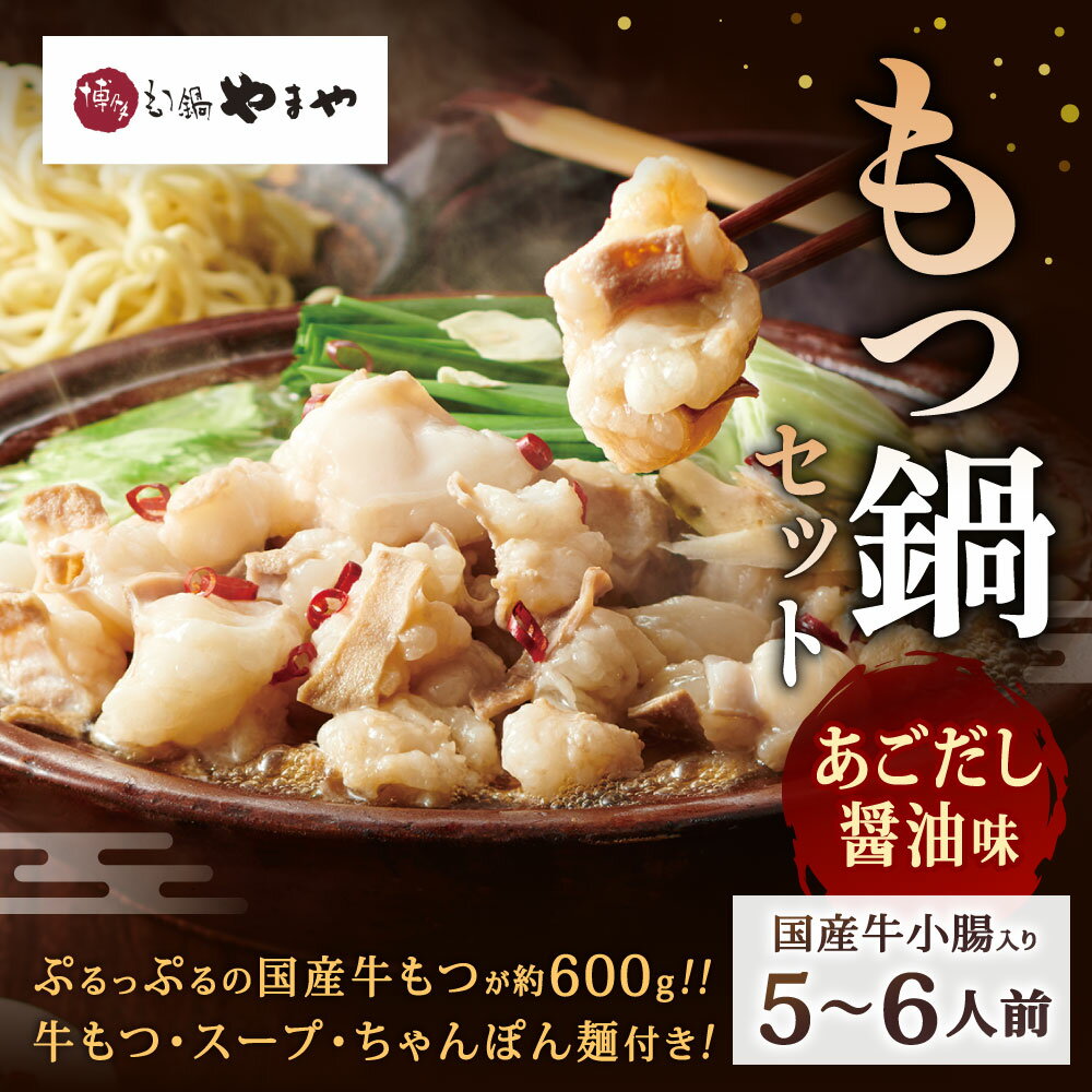 【ふるさと納税】博多もつ鍋やまや もつ鍋セット あごだし醤油味 5~6人前 鍋 牛もつ 国産牛小腸 スープ付き ちゃんぽん麺付き 薬味付き ホルモン モツ 牛ホルモン しょうゆ 博多 福岡県産 九州産 国産 冷凍