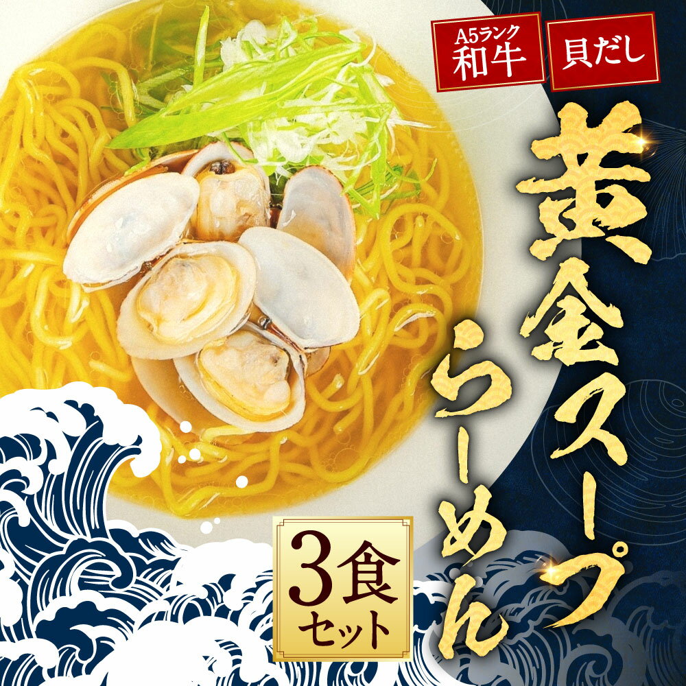 - 【ふるさと納税】【10営業日以内発送】A5ランク和牛と貝だしの黄金スープらーめん 3食セット 黒毛和牛 牛肉 お肉 あさり アサリ ラーメン 貝 魚介類 出汁 麺類 冷凍 長崎県 長崎市 送料無料