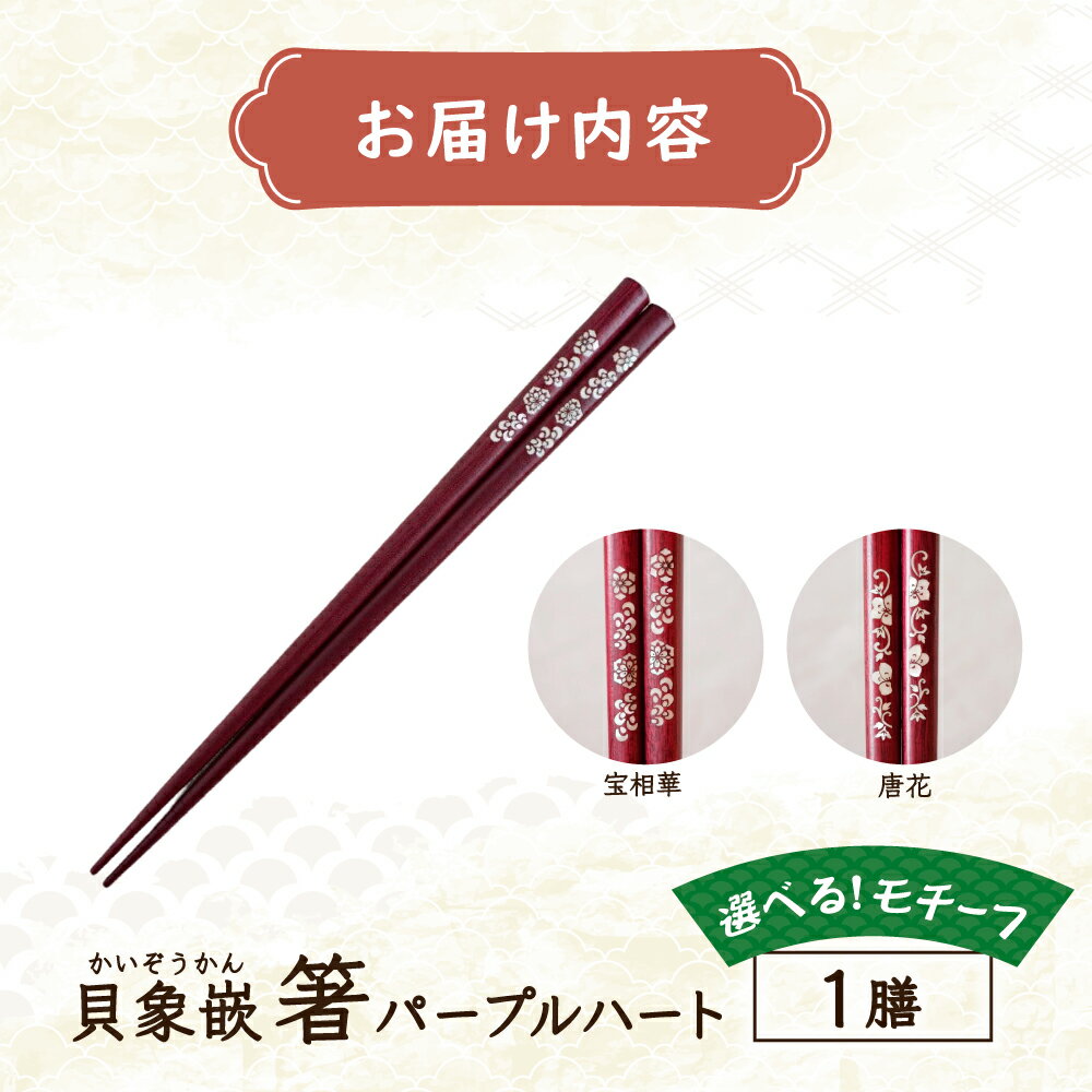 - 【ふるさと納税】貝象嵌箸 パープルハート 唐草文様 宝相華 唐花 選べる2柄 ギフト箱入り 贈り物 プレゼント お祝い 記念日 岩手県 北上市 夢工房 E0299 かわいい 箸 工芸品