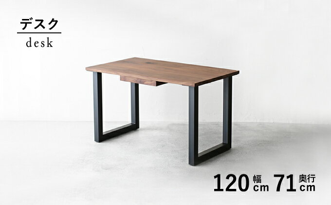 【ふるさと納税】 デスク 木製 無垢材 ウォールナット 幅 120 奥行 71 引き出し付き スチール脚 机 テーブル 書斎 オフィス 勉強机 パソコンデスク 在宅ワーク テレワーク リモートワーク 学習机 作業台 シンプル ナチュラル おしゃれ 国産 家具 日用品 藤枝市 静岡県