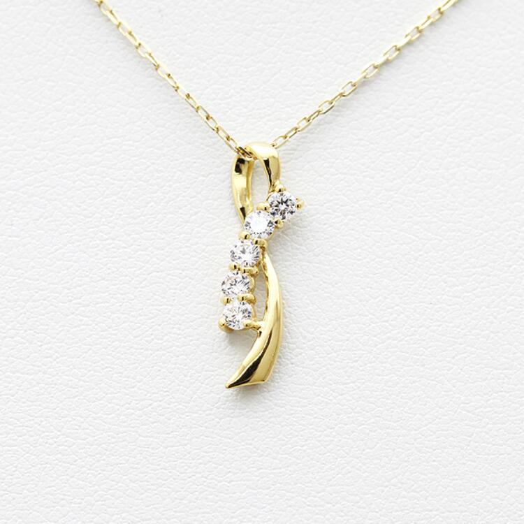 【ふるさと納税】 ネックレス K18YG イエローゴールド ダイヤモンド 0.2ct リボン モチーフ レディース ペンダント【f132-k18yg】 [株式会社オーダーメイドジュエリーメイ 山梨県 韮崎市 20742942] アクセサリー ジュエリー アクセ