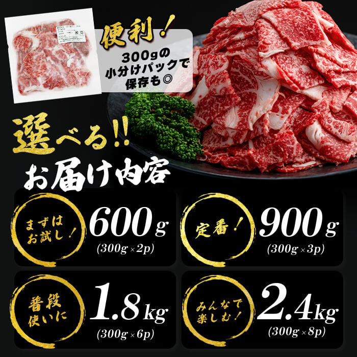 - 【ふるさと納税】【内容量が選べる】国産 黒毛和牛 切り落とし(計600g~2.7kg 1pあたり300g) 牛肉 切落し 小間切れ 小分け 真空 真空パック 牛丼 カレー 肉じゃが 黒毛和牛 定期便【サンキョーミート】