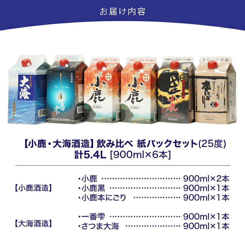- 【ふるさと納税】【超特急便】【お急ぎ便】【鹿児島県大隅焼酎】計5.4L(900ml×6本) 飲み比べ 紙パックセット 小鹿・大海酒造 大好評の鹿児島県大隅地方の芋焼酎のセット【高山商店】