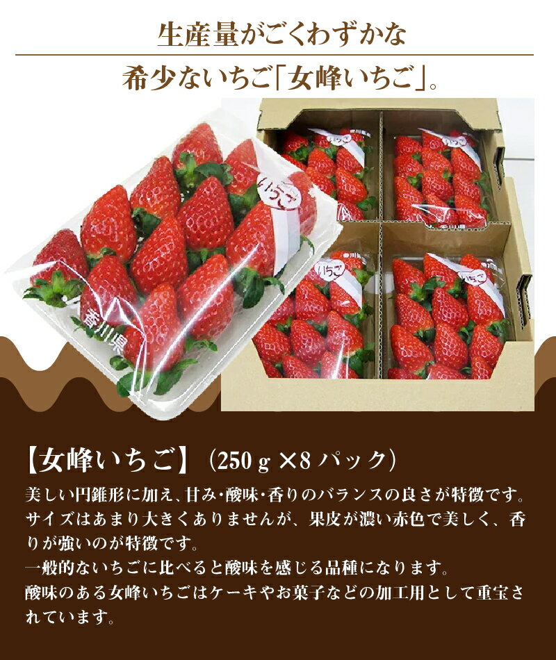 【ふるさと納税】【配送不可地域:北海道・沖縄県・離島】 いちご 食べ比べ セット 女峰いちご さぬきひめ 各 250g 4パック 計 約 2kg 2月上旬より順次発送 甘み 酸味 香りが強い ジューシー 果肉 ケーキ お菓子 果物 フルーツ スイーツ 香川県 お取り寄せ 送料無料