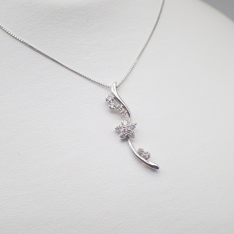 - 【ふるさと納税】< 甲府ジュエリー > ネックレス ペンダント レディース K18 ホワイトゴールド ジュエリー アクセサリー ダイヤモンド トータル0.40ct 天然 チェーン 45cm 2WAY ジュエリーケース付 鑑別書付 保証書付 k125-014