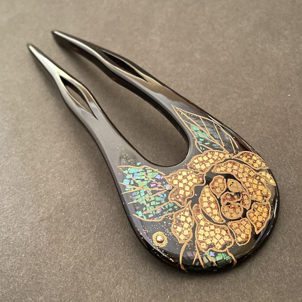 - 【ふるさと納税】薔薇 蒔絵 本べっ甲 かんざし ( 小 )| 1点もの 現品限り べっこう 簪 髪飾り 和装 和服 着物 浴衣 振袖 和小物 おしゃれ ヘアアクセサリー 輪島塗 漆塗り 蒔絵 天然漆 伝統工芸 ファッション プレゼント ギフト 贈り物 能登 石川県 輪島市