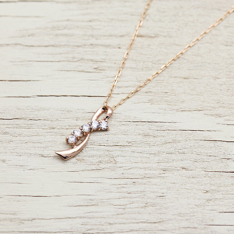 【ふるさと納税】 ネックレス K18PG ピンクゴールド ダイヤモンド 0.20ct リボン モチーフ 【f132-k18pg】[オーダーメイドジュエリーメイ 山梨県 韮崎市 20743762] レディース ペンダント アクセサリー アクセ ジュエリー