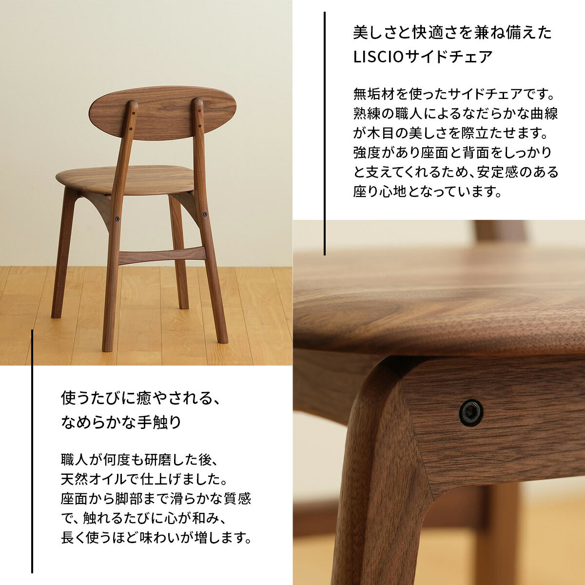 - 【ふるさと納税】府中家具 LISCIO Side Chair[No.625]/ 木製 無垢材 サイドチェア 椅子 イス 送料無料 広島県