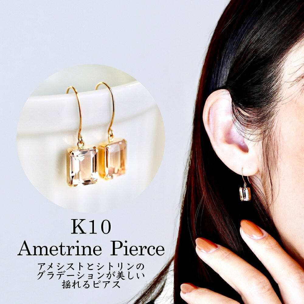 【ふるさと納税】< 甲府ジュエリー > ピアス ジュエリー アメトリン 一粒石 K18 イエローゴールド レディース アクセサリー オクタゴンカット ギフト プレゼント ジュエリーケース付 保証書付 k247-005