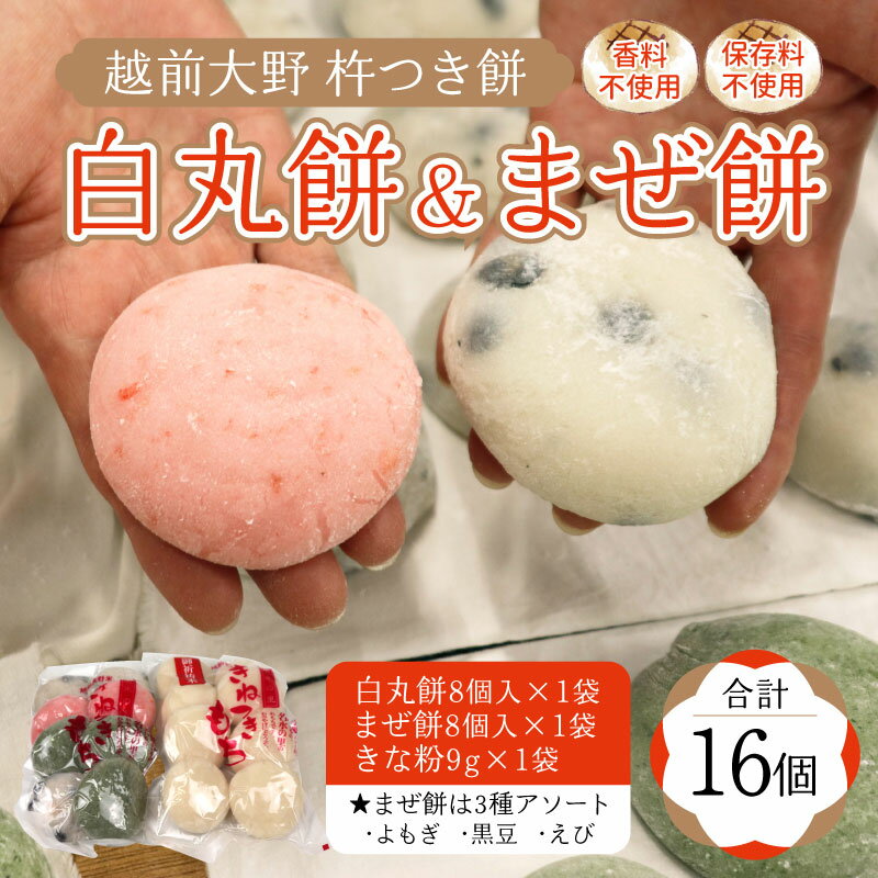 【ふるさと納税】【先行予約】「白餅&まぜ餅」計16個 杵つきもちきな粉付き~大野のお米と名水でつきあげた手造りのお餅~【※12月15日までの入金確認分は年内配送】[A-035012]| 餅 ギフト のし 越前大野 国産 もち 冷凍保存可 餅米 送料無料