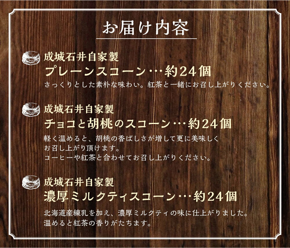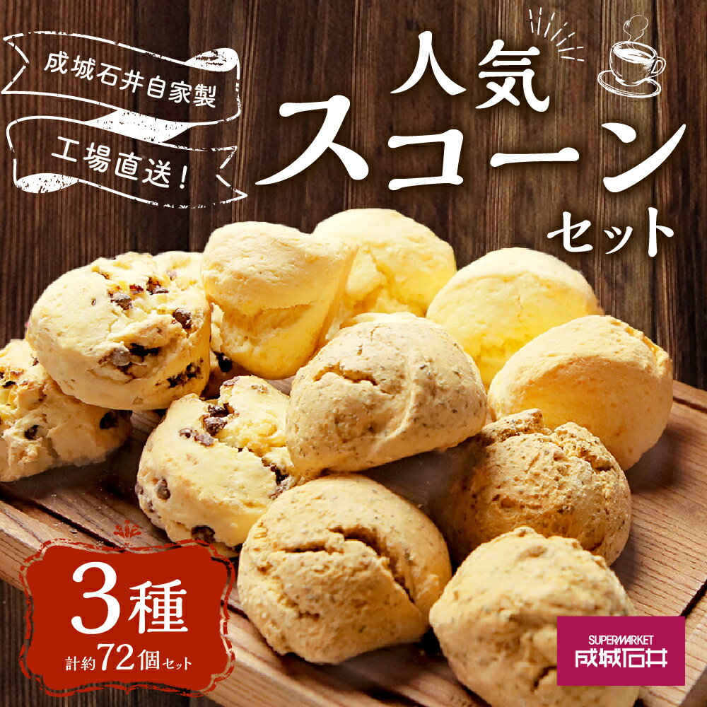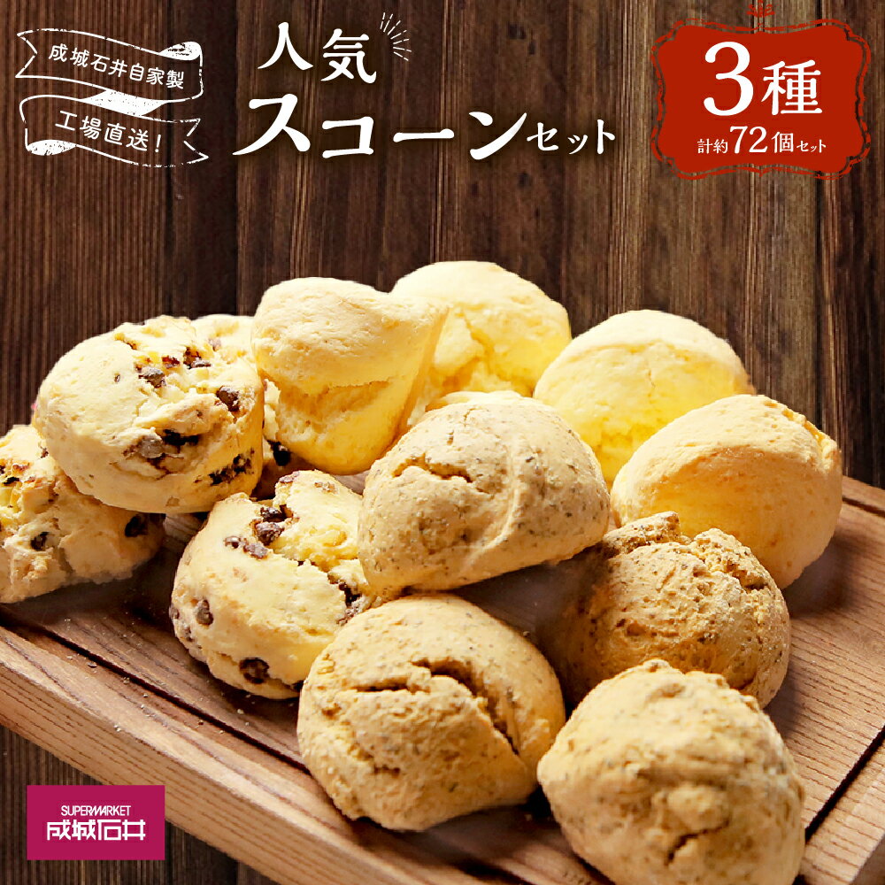 【ふるさと納税】 成城石井自家製 工場直送!人気スコーンセット 3種 計約72個 セット チョコ 胡桃 ミルクティ 自家製 おやつ 軽食 スイーツ 焼菓子 詰め合わせ 神奈川県 大和市 送料無料